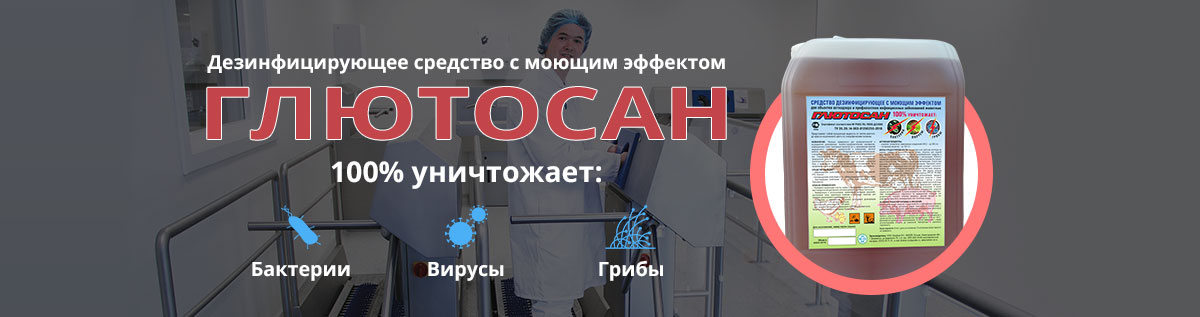 Данное дезсредство очень экономично в применении. Для примера, концентрация дезосредства в зависимости от вида обработки может колебаться от 0,1-0,7%. ГЛЮТОСАН применяют для проведения профилактической и вынужденной дезинфекции всех объектов ветеринарного надзора.